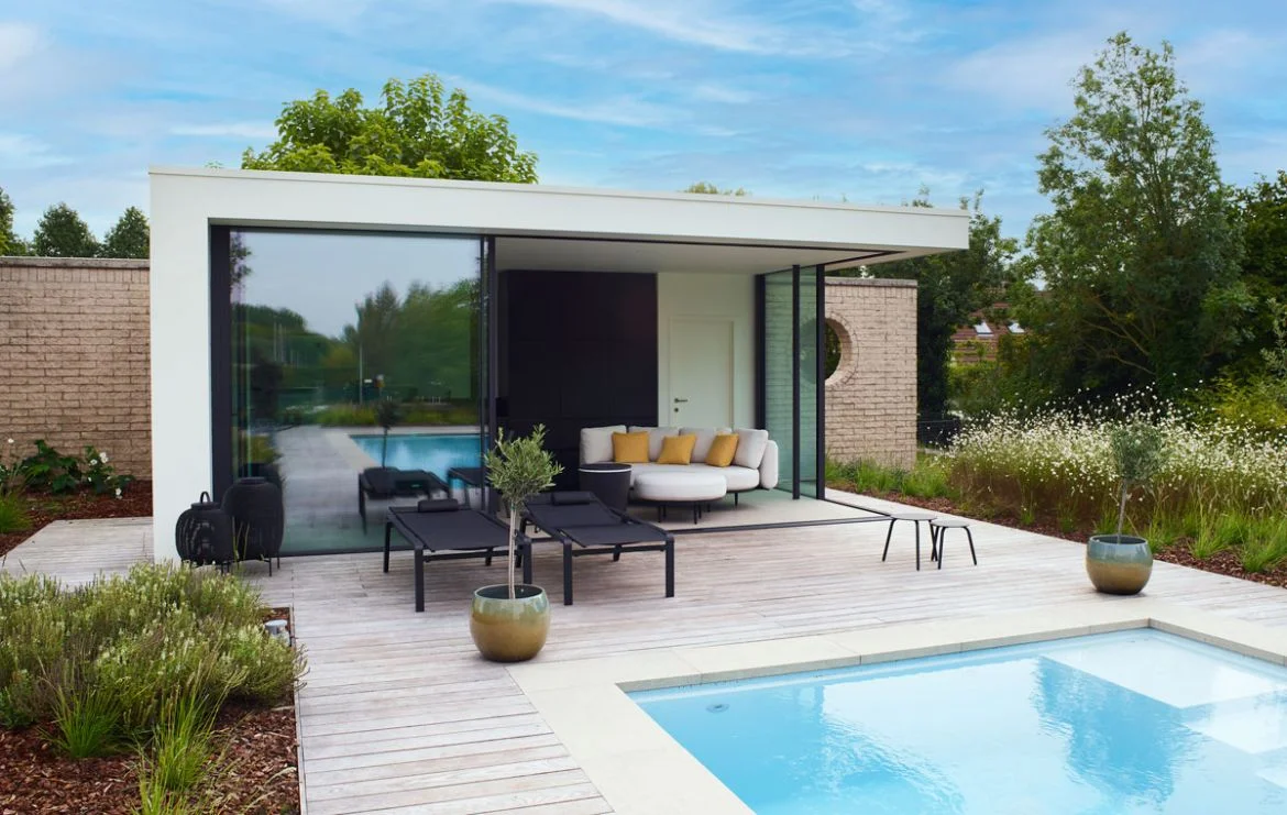 Parois coulissantes pour ouvrir l'espace sur la piscine et le jardin