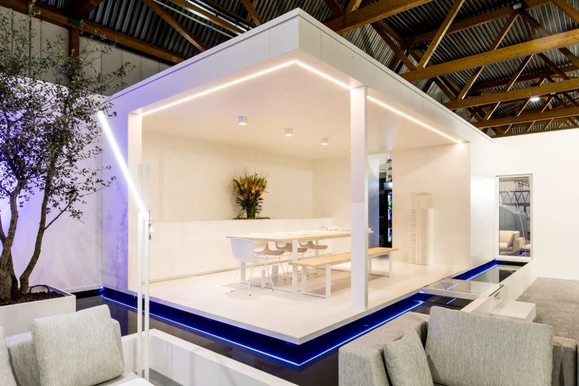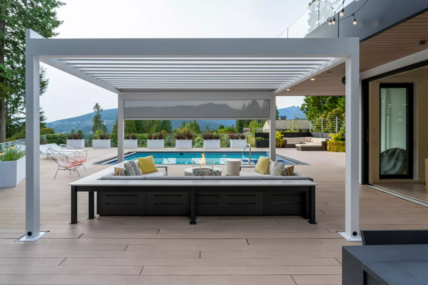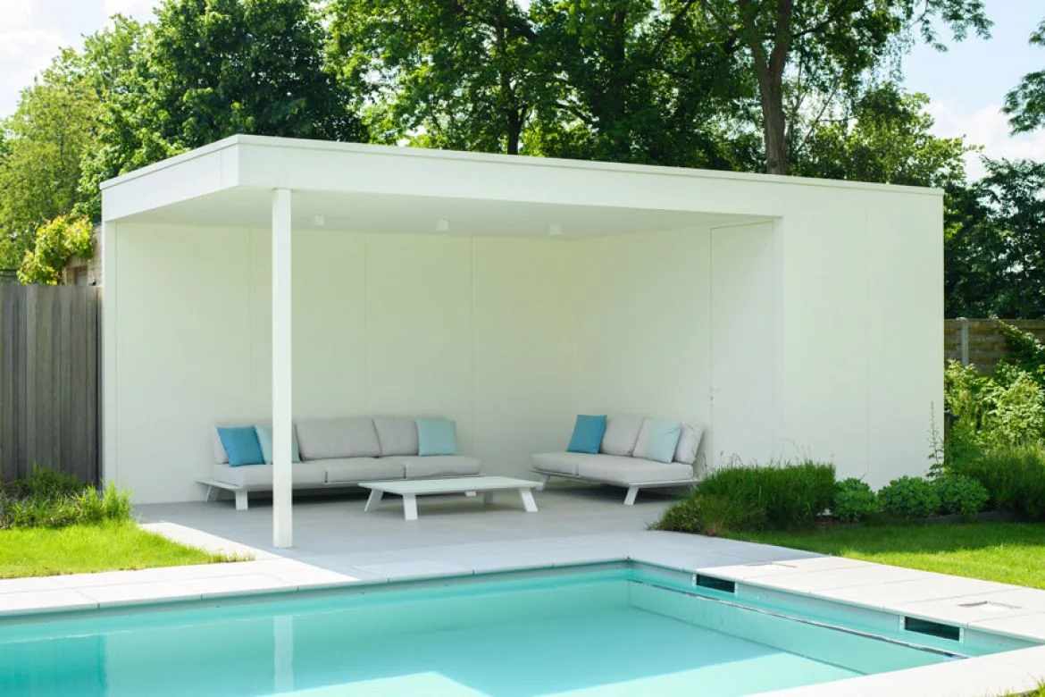 Le pavillon AMS est bien plus qu'un simple abri. C'est un espace de vie complet au bord de votre piscine, vestiaire, cuisine d'été, salon extérieur. Conçu en aluminium et réalisé sur mesure, il s'intègre harmonieusement à votre jardin.