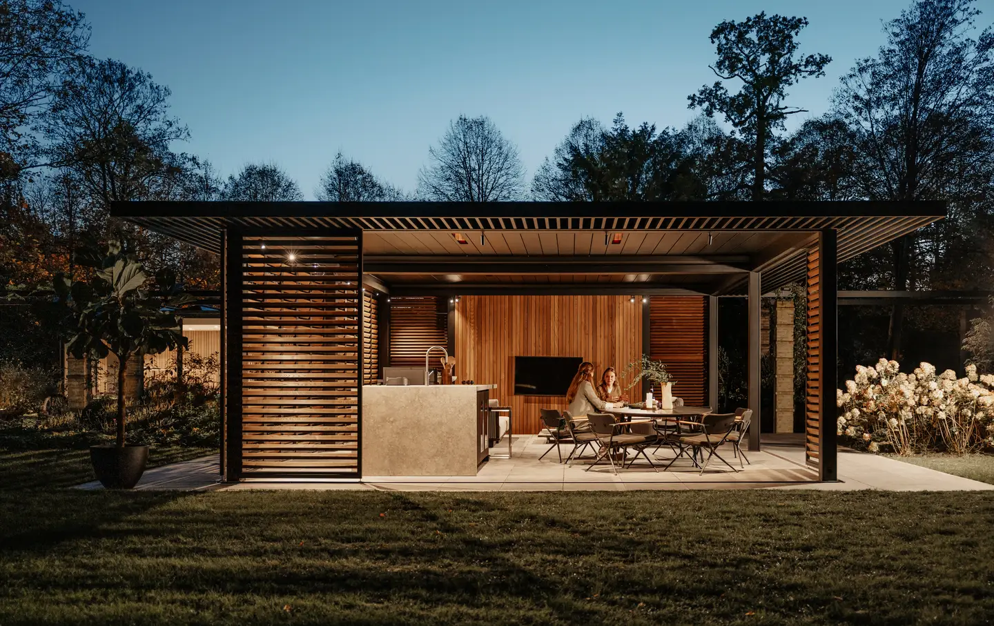 Le pavillon AMS est bien plus qu'un simple abri. C'est un espace de vie complet au bord de votre piscine, vestiaire, cuisine d'été, salon extérieur. Conçu en aluminium et réalisé sur mesure, il s'intègre harmonieusement à votre jardin.